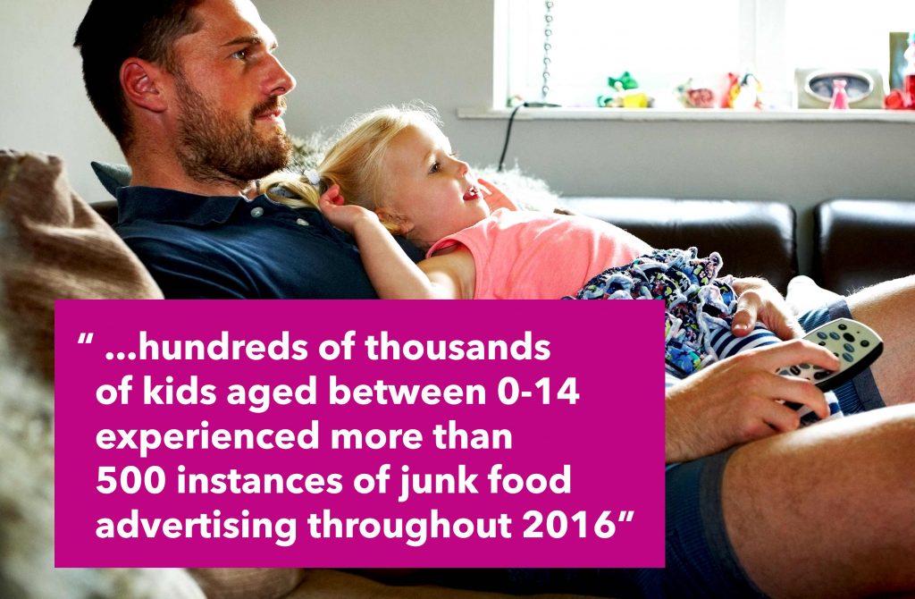 According to findings by ACMA into Australian children’s TV viewing habits, between 148,000 and 210,000 children tuned into reality TV programs during 2016. Seven, Nine and Ten aired a combined total of 188 hours of their top primetime series: Masterchef Australia, I’m A Celebrity Get Me Out Of Here, The Block and My Kitchen Rules during 2016. By applying the Cancer Council’s study findings, it could be understood that hundreds of thousands of kids aged between 0-14 experienced more than 500 instances of junk food advertising throughout 2016, during these four peak-hour series alone.
