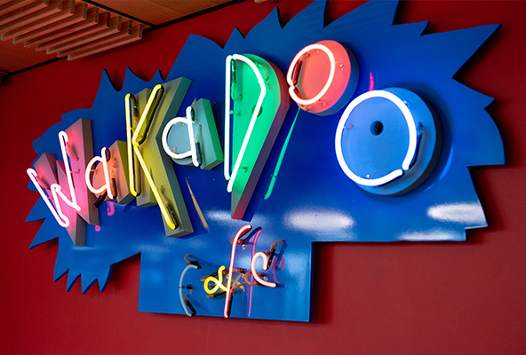 My time at the ACTF has been an amazing experience. When you walk in each morning, you are greeted by the bright neon lights of the Wakadoo Cafe from the show Lift Off!. Everywhere you look, there is a piece of ACTF history. There are bright and colourful posters everywhere, animation cells from programs such as Li’l Elvis Jones and The Truckstoppers and costumes like Wolf from Lift Off! Live. There are always people bustling about undertaking all kinds of different jobs, and there’s always something to do.